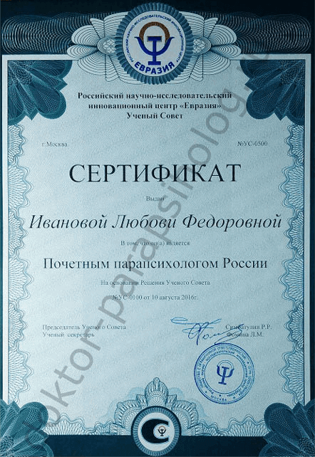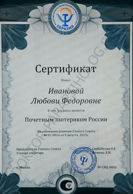 - Обладатель сертификата соответствия. Услуги специалиста: тарология, медиумизм, энергоинформационные взаимодействия.